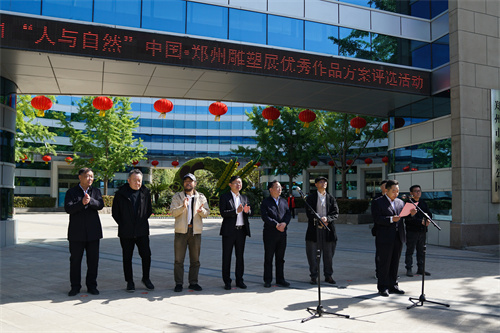 出席本次展览开幕式的中国雕塑学会领导有:中国美术家协会副主席、中国雕塑学会会长、上海美术学院院长曾成钢,中国雕塑学会副会长、中国美术家协会雕塑艺委会主任黎明,中国雕塑学会副会长、上海大学艺术研究院院长杨剑平,中国雕塑学会副会长、党支部书记孙振华,中国雕塑学会副会长、湖北美术馆艺术总监傅中望。出席本次开幕式的郑州市政府领导有:郑州市人民政府秘书长牛建军,郑州市园林局局长辛绍河,郑州市园林局党组成员、副局长赵富荣,河南省工人文化宫主任郭庆。此外还有参展的国内艺术家代表,河南省、郑州市雕塑家代表,郑州市有关部门负责同志,新闻媒体朋友,以及郑州市园林局系统干部职工和广大市民朋友。开幕式由郑州市园林局党组成员、副局长赵富荣主持,郑州市园林局局长辛绍河和中国雕塑学会会长曾成钢分别致开幕词。郑州市人民政府秘书长牛建军宣布2021“人与自然”中国郑州雕塑展优秀作品方案展开幕。