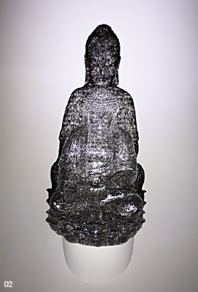 “利物不如流,鉴形不如止。”(白居易《玩止水》)是他的另一件作品中所选用的文字。世间万物的这种流变性与稳定性,永恒性与暂时性,物质性与精神性,本质性与现象,等等,这些构成了我们关于世界观表达的所有逻辑基础。而且,即使是这些两两对应的概念本身,其关系之间到底是二元对立的,还是阴阳互补的关系,正是这些“原问题”构成了人类历史中从文学的、哲学的、宗教的不同角度来解释的,丰富多彩的“知识”现象。郑路的作品中还有一类正是通过这些文学的、哲学的、宗教的不同“知识”现象,应用形象造型语言将这些“原问题”呈现出来。